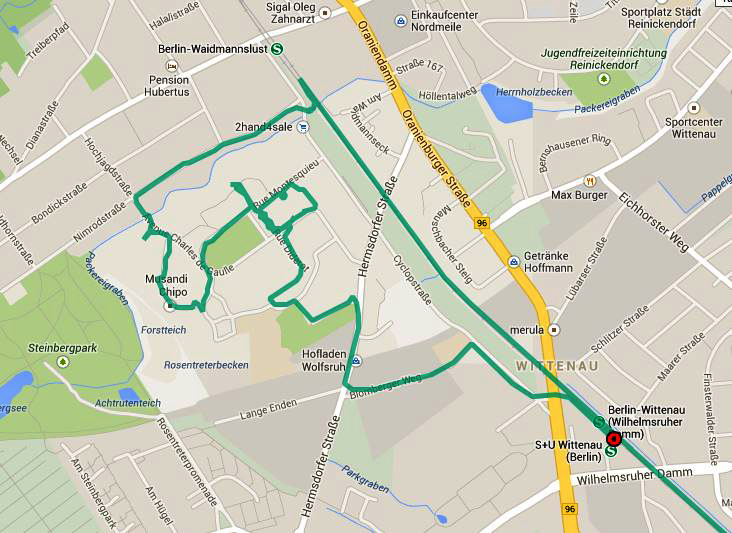 Die alliierten Besatzungsmächte haben gern deutsche Bauvorschriften ignoriert, schließlich waren sie die Sieger und konnten aus eigener Machtfülle handeln. So war es bei den Russen, die sich mit ihrer Botschaft Unter den Linden über das Lindenstatut hinwegsetzten (1) und bei der US-Militäradministration, der bei den Bauten auf dem Düppeler Feld die Bürgerproteste gleichgültig waren (2). Auch die Wohnsiedlung der französischen Alliierten in Waidmannslust entsprach nicht deutschem Planungsrecht. Die Wohnungen hatten nicht deutschen Standard, deshalb sind beispielsweise die Bidets nach dem Abzug der Franzosen ausgebaut worden. Die Straßen mit den blauen Straßenschildern waren Privatgelände, auch wenn sie von der Öffentlichkeit benutzt werden konnten. Ein Bebauungsplan ändert das jetzt und überführt die Straßen in kommunales Eigentum. Ein Anwohner erzählte uns, dass Hundebesitzer das "Privatgelände" genossen hätten, sie konnte ihre Hunde ohne Leine laufen lassen, weil das Ordnungsamt in diesem Gebiet nicht zuständig war.