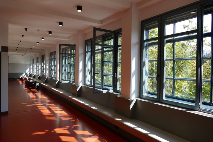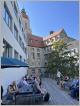 Außer einer Terrasse im 1. Stock zum Hof hat das Haus jetzt auch eine Dachterrasse. Sie ist von der Straße aus nicht sichtbar, weil sie weit genug entfernt von den Kanten des Flachdachs angelegt wurde, um dem Denkmalschutz gerecht zu werden.