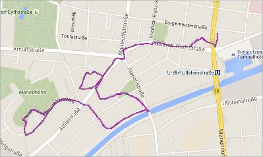 Inzwischen ist die Abenddämmerung hereingebrochen, und so streben wir zu einem Italiener am Fuß der Marienhöhe, um uns zu stärken. Aufmerksam und zügig bedient finden wir den Weg zurück zum U-Bahnhof Ullsteinstraße.