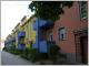 Attilagärten Unser Rundgang zum Alarichplatz führt durch die Attilagärten, eine weitere Wohnbebauung um einen großen Innenhof herum mit viel Grün, aber nicht so abgeschlossen wie die Attilahöhe. Am Alarichplatz finden wir noch mehr Tuschkastenhäuser, immer wieder ist die Farbe blau dabei. Aber die Suche nach blauen Häusern führt mich in die Irre, Meyers Großes Konversationslexikon von 1908 bietet mir das Thema der "von einem Weib öffentlich gewerbsmäßig betriebene Preisgebung des eignen Körpers gegen Entgelt an jeden Beliebigen" an, dies sei in China unter anderem in blauen Häusern erfolgt. Gottlob bewegt sich bei uns die "öffentliche Sittlichkeit in aufsteigender Richtung und man hat gegenüber frühern Zeiten kein Recht, über zunehmende Verwilderung zu klagen" lese ich dort und kann mich beruhigt wieder unserem Spaziergang zuwenden, auch wenn das Rätsel der blauen und andersfarbigen Häuser zunächst ungelöst bleibt.