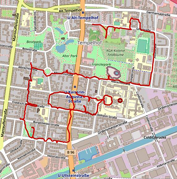Drei Mal Friedrich Für eine Ehrung im Viertel der Tempelhofer Mitte musste man wohl Preußenprinz mit Vornamen "Friedrich" sein, dreimal gibt es hier eine "Friedrich-…-Straße". Der Großherzog Friedrich Franz war Sohn einer Preußen-Prinzessin, Friedrich Karl Nikolaus von Preußen wurde mit der Friedrich-Karl-Straße geehrt. Den Straßennamen Friedrich-Wilhelm-Straße hat man etwas hingebogen, er ehrt Kaiser Wilhelm I., der nicht Friedrich Wilhelm hieß, sondern umgekehrt Wilhelm Friedrich Ludwig von Preußen. Andererseits hätte man aus der Albrechtstraße richtigerweise eine Friedrich-Albrecht-Straße machen können, denn er hieß Friedrich Heinrich Albrecht Prinz von Preußen. Noch eine Randbemerkung: Anders als man vermuten könnte, ist die Götzstraße nicht dem Herrn von Berlichingen gewidmet, sondern einem turnenden Arzt, dessen Name auch noch falsch geschrieben ist, er hieß "Goetz".