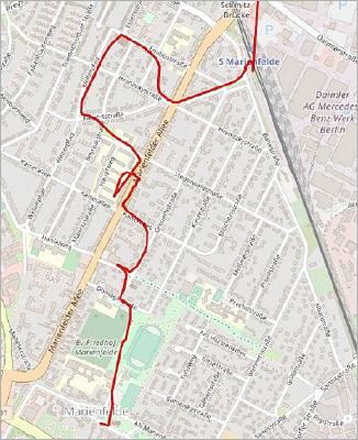 An der Dorfaue steht die älteste Berliner und Märkische Kirche von 1220, und hier ist auch die Familiengrabstelle der Kieperts erhalten. Das Dorf liegt in einem tiefen Schlummer, bis wir ermattet im Vorgarten einer Gaststätte an der Straße Alt-Marienfelde Platz genommen haben. Mit einem lärmenden motorbetriebenen Rasenmäher geht unvermutet der direkte Nachbar dem zu langen Gras an den Halm, und als endlich Ruhe ist, öffnet er das Hoftor und setzt seine Arbeit ungerührt in seinem Vorgarten weiter fort, bis zum zweiten Mal Ruhe einkehrt. Aber er hat Stil, lässt sich durch meine Frage, ob er nicht noch etwas zum Mähen finden könnte, nicht provozieren, bleibt freundlich. Solche Gelassenheit findet man in Berlin wahrscheinlich nur an so einem Ort, an dem die Hektik der Stadt vorbeigeht. ------------------------------------ Unser erster Besuch in Marienfelde: Alt Marienfelde