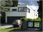 Einfamilienhaus aus Sichtbeton An der Scharfen Lanke in Spandau finden wir ein Einfamilienhaus, das tatsächlich "beton brut" zeigt, es ist innen und außen vollständig aus Sichtbeton. Es ist wohl das einzige Wohngebäude seiner Art in Berlin, verwendet wurde wärmedämmender Leichtbeton. Auch dieses Bauwerk hat kubische Formen, ein rückwärtig angebauter zweiten Kubus bleibt den Blicken verborgen.