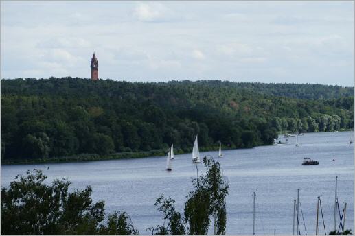 Tauchturm der DRLG-Lebensretter Weichen wir zwischendurch einmal vom Thema Einfamilienhäuser ab: Beim Blick über die Scharfe Lanke sieht man an der Straße Am Pichelssee den Tauchturm der DRLG-Lebensretter. Wer einen Tiefenrausch erleben will und Taucherfahrung hat, kann durch eine ingenieurmäßig ausgeklügelte Simulation in eine physikalische Tauchtiefe von 50 Metern versetzt werden. Dazu braucht er nur Badebekleidung, Atemgerät und Druckluftflasche. In einer trockenen Druckkammer eingeschlossen, wird er mithilfe von Pressluft in die Druckverhältnisse in 42 Metern Wassertiefe gebracht. Anschließend taucht er im Wasser des eigentlichen Tauchturms bis zu 8 Meter tiefer und kann sich dort aufhalten.