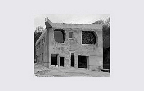 In einer gemeinsamen Aktion mit Freunden und Bekannten hat er die im Fabrikbau vorhandenen Fensteröffnungen mit Vorschlaghammern vergrößert. Was wie brutal aus dem Gebäude herausgerissen wirkt, ist ein neuer Denkansatz für den Bautypus Villa, eben die Anti-Villa.