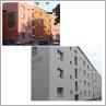 Der Zeilenbau in der Burscheider Straße wirkte bei unserem Besuch im Juni 2007 mit Farbflächen in orange, ocker und Rottönen sehr belebt und aufgelockert. Allerdings war dies nicht der Originalzustand, Mebes und Emmerich hatten einen lang gestreckten weißen Baukörper hingestellt. Inzwischen ist für die "energetische Sanierung" die übliche Fassadendämmschicht darauf geklebt worden, die den historischen Farbzustand simuliert. Schon gibt es hier die abgestoßenen Ecken der weichen Dämmschicht und an anderen Häusern fangen die Fassaden an, zu verschmutzen. Aber unbeirrt hält man politisch an der Fassadendämmung fest, die weder technisch beherrscht wird noch langfristig haltbar ist.