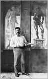 Max Slevogt schuf hier 1911 Fresken, die später in der Alten Nationalgalerie zu sehen waren und im Zweiten Weltkrieg verloren gingen. Er malte einen Gartenpavillon aus mit heiter-spielerischen Themen zur Zauberflöte von Mozart (er verehrte Mozart). Max Liebermann "drüben" am Wannsee setze sich auf seine Weise mit dem öffentlichen Lob für Slevogt auseinander: In der Loggia der Liebermann-Villa befinden sich fünf Wandbilder mit einer Gruppe badender Knaben, zwei Pferden mit Reitknechten im Wasser und zwei Reitern am Strand, die als Gegenentwurf zu Slevogts Fresken entstanden sind.