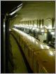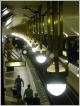 Von ganz anderer Wirkung ist der U-Bahnhof Haselhorst. "Metropolis" sagt mein fotografischer Coach und Ratgeber spontan beim Blick auf die Licht- und Schattenwirkung in einem fast ohne Farben gestalteten Bahnhofsraum. Es ist vor allem die Deckenkonstruktion, die bizarre Muster des Maschinenzeitalters projiziert. Rümmler hat hier ohne Ornamente einen eindrucksvollen Raum geschaffen. Das ist eine Dimension, die er bis zum Ende der Spandauer Strecke beibehalten wird: weg vom reinen Ornament, hin zum Raumerlebnis bei den Spandauer U-Bahnhöfen an Spree und Havel, die ich eingangs beschrieben habe.