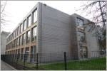 Der Schulbau enthält 16 voll digital ausgestattete Klassenräume, die Mensa, das Lehrerzimmer und Kommunikationsbereiche für die Schüler.