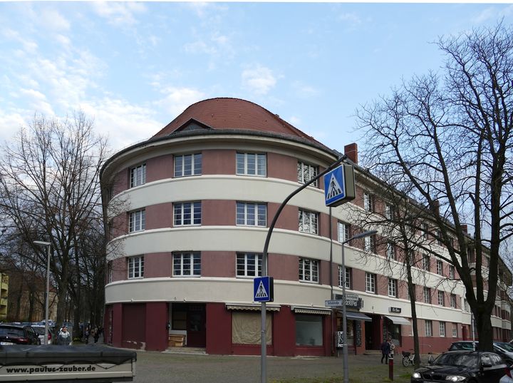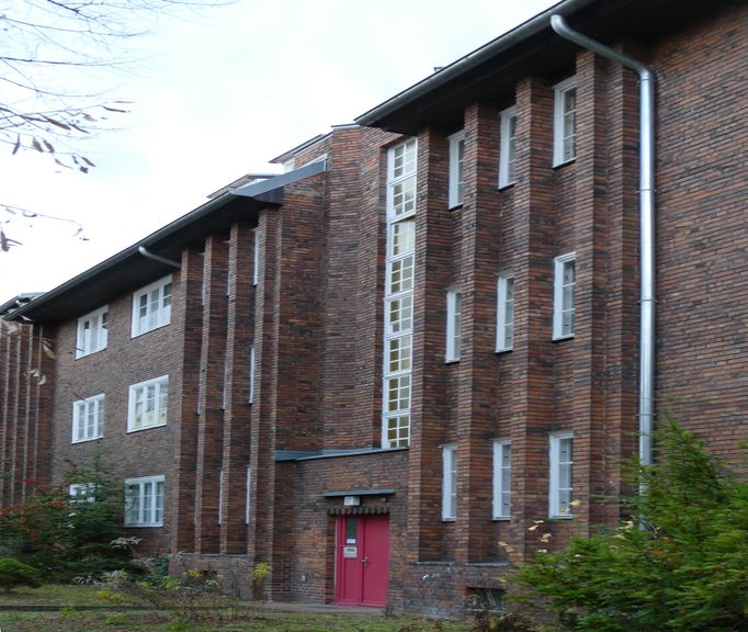 Die Postheimstätte hat an der Mühlenstraße 1930 zwei Wohnanlagen gebaut, die in ihrer Mitte ein Ensemble von vier markanten Wohngebäuden umschließen. Deren dreistöckige Backsteinbauten mit eckigen Halbsäulen betonen die Vertikale. Zwischen zwei Vorsprüngen ist jeweils eine Fensterachse untergebracht. Die Treppeneingänge sind durch breite Fensterachsen betont.