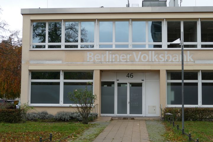 Offensichtlich hat die Bank die Freude an dem Haus verloren, die alte Filiale entspreche nicht mehr "modernen Sicherheits- und Arbeitsstandards". Stattdessen will sie einen Siebengeschosser als Neubau errichten. Allerdings braucht das - man ist im "allgemeinen Wohngebiet" - einen "vorhabenbezogenen Bebauungsplan", und das kann dauern. Wahrscheinlich wird dann die Grünfläche Wrangelstraße Ecke Schloßstraße in die Bebauung einbezogen (bei unseren sieben Grünflächen haben wir sie schon nicht mitgezählt).