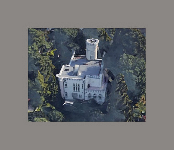 "Villa Babelsberg" Ein außergewöhnlicher Bau versteckt sich am westlichen Ende der Matterhornstraße hinter großen Bäumen. Doch wenn der Rundturm durchscheint über dem Söller und den Zinnen oder man in Google Earth aus der Vogelperspektive draufschaut, glaubt man sich zum Schloss Babelsberg versetzt, das von Karl Friedrich Schinkel begonnen und von Ludwig Persius vollendet wurde.