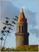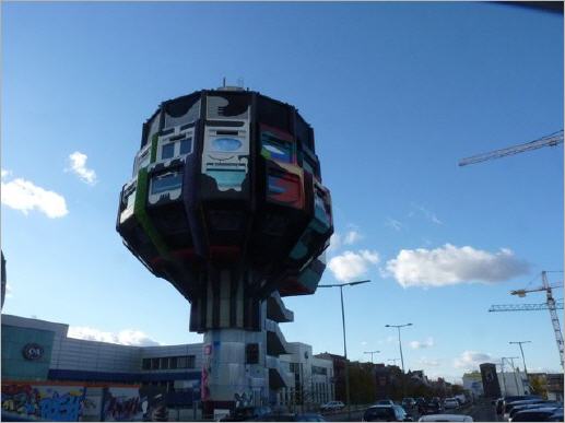 Bierpinsel Nach Steglitz gekommen sind wir, um den Bierpinsel mit seiner veränderten Oberfläche zu betrachten. Die Idee, die seit den 1970er Jahren einfarbig rote Ikone der Nachkriegsmoderne vorübergehend als Fläche für die Kunst herzugeben, hat die Aufmerksamkeit auch derjenigen geweckt, für die der Bierpinsel ein nicht mehr wahrgenommenes selbstverständliches Stadtmöbel ist. Nun regt sich Widerstand (unter anderem der Architekten), andererseits hört man Beifall. Durch ein geschicktes Beiprogramm wird die fachliche Diskussion über Kunst und Architektur gefördert. Es kommt nicht darauf an, ob man die Kunst am Bierpinsel "schön" findet oder ob man den Bau vorher gemocht hat, hier wird einfach bauliches Erbe bewusst gemacht und das mit einem guten Händchen der beiden Damen, in deren Händen der Bierpinsel jetzt ist. Werden die Kunstwerke wirklich irgendwann wieder entfernt? So manches Temporäre ist Dauerlösung geworden, man wird sehen. Vielleicht wird von Zeit zu Zeit anderen Künstlern die Möglichkeit geboten, sich hier zu präsentieren.