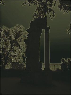 Zu der Inszenierung gehörte eine Säule vom Pariser Palais des Tuileries, dem Königsschloss, das 1871 zerstört worden war. Wessel hatte sie in Paris erworben und - von künstlichem Mauerrest aus einheimischen Klinkern gestützt - auf der Insel aufstellen lassen. Als die französische Besatzungsmacht nach dem Zweiten Weltkrieg hier Beutekunst vermutete, konnte der Vater des "Inselältesten" - Berlins auf der Insel wohnender ehemaliger Polizeipräsident Georg Schertz - den Kauf belegen und damit die Rückkehr der Säule nach Frankreich verhindern. Damit hat die Säule mehr Glück gehabt als ihre holprige Sockelinschrift befürchten ließ: "Dieser Stein vom Seinestrande / Hergepflanzt in deutsche Lande Ruft dir, Wandrer, mahnend zu: / Glueck, wie wandelbar bist du."