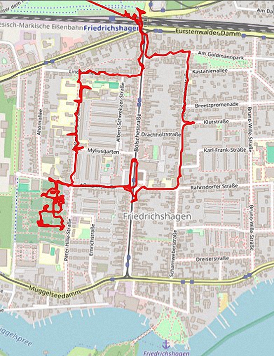 Unserer Leidenschaft für Rhabarberkuchen konnten wir auf der Hälfte unseres Weges in der Bölschestraße in einem Café nachgehen, anschließend führte unser Rückweg durch die Scharnweberstraße mit ihren vielen denkmalgeschützten Bauten. --------------------------------------------------------------