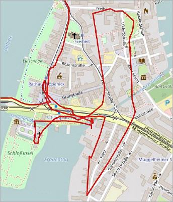 Am Alten Markt 4 weist eine Gedenktafel auf "Mutter Lustig" hin, am Frauentog steht ihr Denkmal: Henriette Lustig hatte 1835 die erste Lohnwäscherei eingerichtet, Köpenick wurde dadurch zur "Waschküche Berlins“ mit mehreren hundert kleinen Wäschereien, bevor die fabrikmäßige Wäscherei und Färberei von Wilhelm Spindler einem ganzen Köpenicker Ortsteil den Namen gab (--> 3). Um 1700 kamen 70 hugenottische Seidenweber, Bierbrauer und Tuchmacher nach Köpenick. Der Große Kurfürst hatte ihnen durch das Edikt von Potsdam besondere Privilegien gewährt, weil er das Land mit ihrem Know-how modernisieren wollte. Die Straße "Freiheit" - in der die Hugenotten ab 1705 angesiedelt wurden - verweist auf ihre Befreiung von Abgaben und militärische Einquartierung. Freiheit 8 stand eine Synagoge, die beim Novemberpogrom 1938 beschädigt und nach dem Krieg vollständig abgerissen wurde, eine Gedenktafel am Nebengebäude erinnert an das Gotteshaus. An der Seitenwand eines anderen Nachbarhauses blieb ein Abdruck des nicht mehr vorhandenen Fachwerkgebäudes erhalten.
