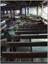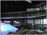 Der Rundwanderweg beginnt mit einer Treppe, die in zwei Etagen an der Außenfront zum Schloßplatz hin hochführt. Dann kommt man über einen Steg, der mitten durch das entkernte Innenleben des Palastes führt. Mit Blick auf Stahlträger und wuchtige Schrauben, ein Gewirr von Deckenbefestigungen, Tribünen, ein Amphitheater, lange Fluchten von stählernen Säulen und natürlich auf den Berg, der in einer Farbigkeit zwischen silbern, grau und blau von innen leuchtet wie ein verstrahltes Raumschiff. "Das ist hier KEIN Berg" verheißt dadamäßig eine französische Schreibschrift auf dem Boden.