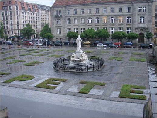 Weitere Beispiele finden sich in einem begehbaren Kreuzworträtsel, das zur Zeit am Gendarmenmarkt vor dem Konzerthaus angesehen werden kann (eine temporäre Kunstinstallation). "Bulette" (ohne o) lesen wir dort und "Malheur" - und dies können wir nur bestätigen, denn bei dem wolkenbruchartigen Regen kriecht die Feuchtigkeit über die Schultern herunter und durch die Hosenbeine herauf, an weiteres Flanieren ist nicht zu denken.
