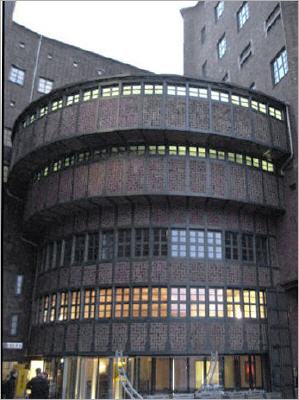 Abspannwerk Buchhändlerhof Bei einem Blick in den Hof der ehemaligen Markthalle entdecken wir ein Nachbargebäude, das nach seiner Formensprache nur ein Umspann- oder Abspannwerk sein kann, und richtig: Das von Hans Heinrich Müller (um-)gebaute Abspannwerk Buchhändlerhof steht hier im Innenbereich zwischen Mauerstraße 79-80 und Wilhelmstraße, seine Verwandtschaft mit dem Umspannwerk Scharnhorststraße ist unverkennbar.
