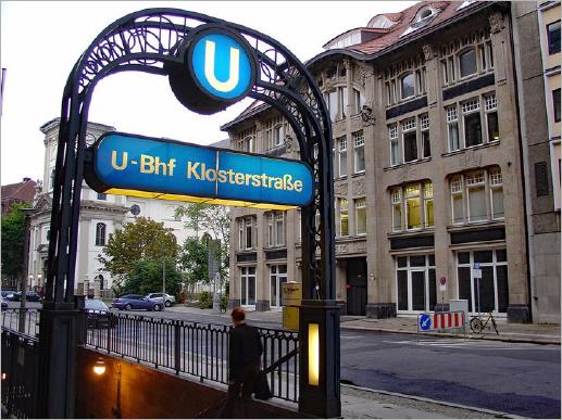 Am Bahnhof Klosterstraße beginnt die heutige Rundfahrt unter und über der Berliner Mitte. Erinnert wird mit dem Namen an das Franziskanerkloster, in dessen Gebäuden später das später das "Gymnasium zum Grauen Kloster" untergebracht war. Räumlich gesehen ist dies die Keimzelle Berlins aus der Zeit der Schwesterstädte Cölln und Berlin.