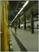 Der U-Bahnhof Hauptbahnhof geht insgesamt 20 Meter in die Tiefe, er ist mit dem Straßen- und Fernbahntunnel zusammen gebaut worden. Die unterirdische Halle vor dem Bahnsteig zum nördliche Ausgang der Invalidenstraße ist ein ausgedehnter Raum, der mit querlaufenden Lichtbändern und zum Fluchtpunkt strebenden Fußbodenfeldern eine klare Richtung vorgibt, ohne Hektik oder Enge zu erzeugen. Mir gefällt dieser Raum außerordentlich gut.