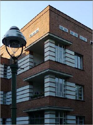 Anders als in der Tuschkastensiedlung, der Onkel-Tom-Siedlung und der Carl-Legien-Siedlung hat Bruno Taut hier bei der Fassadengestaltung nicht mit Farben gearbeitet, sondern sich an die "Amsterdamer Schule" angelehnt, die durch extravagante Verwendung von Backstein (verkantet, hervortretende Muster) und einer klassischen vertikalen Fassadengliederung mit Pfeilern, Erkern, Balkons und Loggien geprägt ist. Die Backsteinfassaden werden bei ihm durch helle Putzflächen aufgelockert, eine Mischung aus expressionistischen Detailformen und Neuer Sachlichkeit. Die Siedlung hat keine Geschäfte und keine Lokale, Durchmischung und kleinteiliger Funktionsmix waren verpönt, Wirtschaft, Arbeit und Einkaufen bedeuteten damals Lärm und Gestank, den man vermeiden wollte.