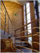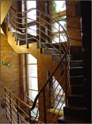 Direkt das Eckhaus an der Osloer Straße ist ein ehemaliger Bewag-Bau, das Umspannwerk Christiania,1928-29 von Hans-Heinrich Müller, dem Bewag-Hausarchitekten als Backsteinbau errichtet. Der Denkmalschutz lockt mit der Beschreibung: "Am eindrucksvollsten ist der Gebäudesims des Turms, an dem die langen gotisierenden Fenster in orientalischen Spitzbögen enden, wobei die Fassade in ihrem Aufbau an gotische Innenräume erinnert." Zuerst gehe ich nur an der Fassade vorbei, später zieht es mich ins Innere, das Treppenhaus fasziniert mit immer wieder neuen Einblicken.