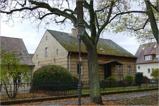 An den Außenseiten der Straßen standen in einer Art Rangordnung die Güter und Vollbauernstellen nahe der Dorfmitte, in beiden Richtungen weiter zum Ortsausgang waren die Kossäten (Kleinbauern) und Büdner (kleines Haus - "Bude" - mit wenig Land) angesiedelt. Das Dorf bewahrte über die Jahrhunderte seine klassische Form, die bäuerlichen Gehöfte prägten das Bild. Strohgedeckte Bauernhäuser sind nicht erhalten, Fachwerkhäuser aus der Zeit um 1800 mit Schiefer- oder anderer Dachdeckung gehören heute zu den ältesten Bauten. Vorstädtische Bauten mit einem Obergeschoss haben sich zwischen die Bauernhäuser gesetzt, trotzdem blieb der ländliche Charakter erhalten.