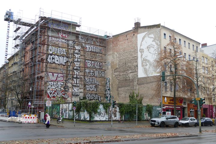 Alvenslebenstraße Jenseits der Potsdamer Straße setzt sich die Winterfeldtstraße als Alvenslebenstraße fort. Das Eckgrundstück zur Potsdamer Straße war im Krieg ausgebombt. In einem Behelfsbau betrieb der Gastwirt Gustav Eichelkraut eine Kneipe, 1995 wurde sein Bau wegen einer geplanten Neubebauung abgerissen. Im Volksmund heißt das Grundstück immer noch Eichelkrauts Ecke. Einen Neubau gibt es hier immer noch nicht. Die Ratten haben das Grundstück erobert, auf einem Wandbild oben an einer Brandmauer ist das Portrait eines prominenten Berghain-Türstehers und Hobbyfotografen zu sehen.