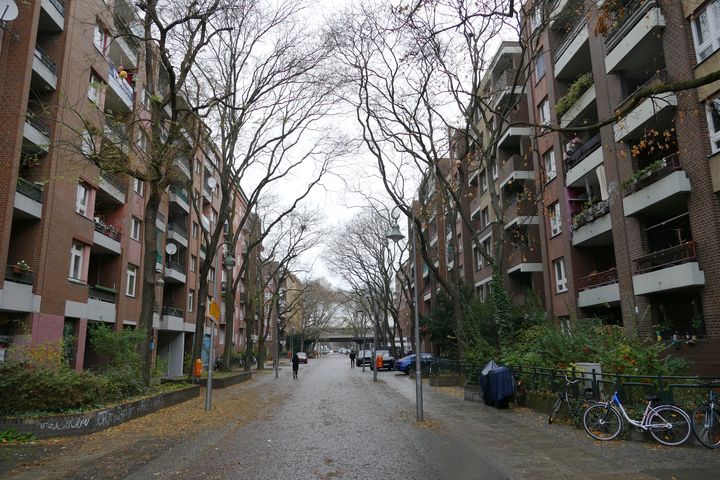 Hier wurde vor 10 Jahren der Pkw-Verkehr reduziert, um mehr Raum für das urbane Leben zu schaffen. Die Straße wurde so gestaltet, dass alle Verkehrsteilnehmer sich gleichberechtigt im öffentlichen Straßenland bewegen können, ohne dass Gebote und Verbote dies regeln müssen. Die Fahrbahn wurde verkleinert und verschwenkt, die Radwege von den Bürgersteigen getrennt, die Bordschwellen abgesenkt, zusätzliche Sitzbänke und Spielgeräte aufgestellt. Dass statt der 50 Parkplätze nur noch begrenzte Haltezonen vorhanden sind, hat die Anwohner "noch nicht richtig überzeugt".