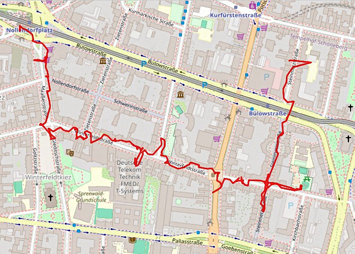 Begegnungszone Nochmal zurück zum Anfang unserer Route: Vom U-Bahnhof Nollendorfplatz durchquert man auf dem Weg zum Winterfeldtplatz Berlin erste "Begegnungszone". Die Maaßenstraße mit einer Regenbogenfläche auf einem Teil des Asphalts ist die Promenade der „Schönen und Entspannten“ im Regenbogenkiez.