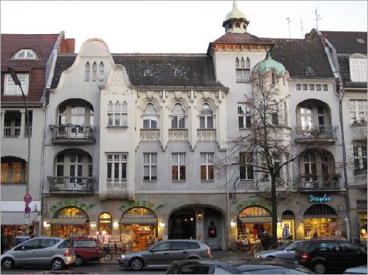 Wir kommen zur Düppelstraße, die an ein dänisches Dorf erinnert, das 1864 im Deutsch-Dänischen Krieg von der preußischen Armee gestürmt wurde (vom Kampf um die Düppeler Schanzen hat mancher vielleicht im Geschichtsunterricht gehört). Und gelangen zum Paul Mebes-Park (2), der den Reformarchitekten ehrt, der in Berlin eine Reihe von Siedlungsprojekten errichtet hat (Mebes & Emmerich: z.B. "Flußpferdhof"-Siedlung, Kleinhäuser der Siedlung Jungfernheide, Friedrich-Ebert-Siedlung am Volkspark Rehberge, Gartenstadt Zehlendorf Berlepschstraße, in der Einfamilienhaus-Zeilen nach der Sonne ausgerichtet wurden).