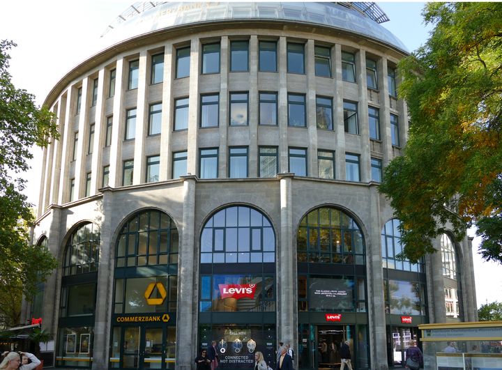 "Kaisereck", Geschäftshaus Michels und Cie. Obwohl die Kaiserstraße schon 1888 in Rankestraße umbenannt wurde, ist der Rundbau am Breitscheidplatz 1914 als "Kaisereck" errichtet worden. Heute wird er als Geschäftshaus Michels und Cie. bezeichnet, dessen Leuchtreklame strahlte vom Dach zum Kurfürstendamm herüber. Das Haus ist nach dem Krieg vereinfacht und ohne Bauschmuck wieder aufgebaut worden. Als markante Architektursprache seines KaDeWe-Architekten Emil Schaudt blieben aber weiterhin - wie beim Tauentzien-Palast (s.o.) - die Rundbogenfenster, die das Erdgeschoss und das erste Obergeschoss miteinander verbinden.