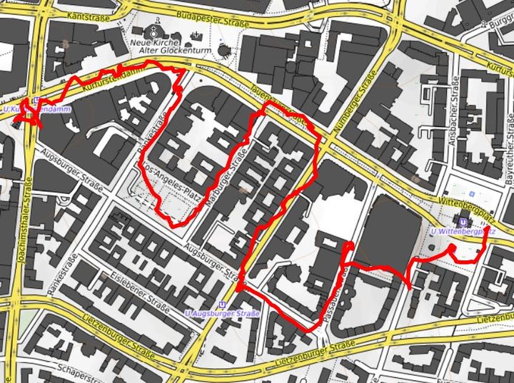 Von Grimmek zu Grenander sind wir heute unterwegs, wenn man die Architekten der U-Bahnhöfe Kurfürstendamm und Wittenbergplatz benennt. Bruno Grimmek, der an der Berliner Baugewerkschule ausgebildet worden ist, hat 1961 - im Jahr des Mauerbaus - den Kreuzungsbahnhof Kurfürstendamm realisiert, an dem unser Spaziergang beginnt. Alfred Grenander erbaute 1912 den Bahnhof Wittenbergplatz mit fünf nebeneinander liegenden Gleisen - einmalig in Berlin. Im Café Grenander am Wittenbergplatz werden wir mit Omas Kuchen verwöhnt, ungleichmäßig großen Stücken von Blechkuchen, teilweise mit Rand, das hat keine Maschine geschnitten, Abweichungen nimmt man gern in Kauf.