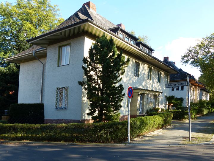 Auf einem Sockel räkelt sich der Vater Rhein, gegenüber schaut die Nahe sehnsuchtsvoll auf den Rosselenker Siegfried. Der Rüdesheimer Platz mit dieser Skulpturengruppe liegt im Zentrum der Terrassen-Gartenstadt, die nach einheitlichem Plan im Rheingauviertel angelegt wurde. Doch das Viertel - das seine Bezeichnung von den Straßennamen ableitet - erstreckt sich Richtung Westen weiter bis zur Mecklenburgischen Straße. In diesem Bereich haben Architekten unterschiedliche Wohnanlagen geschaffen.