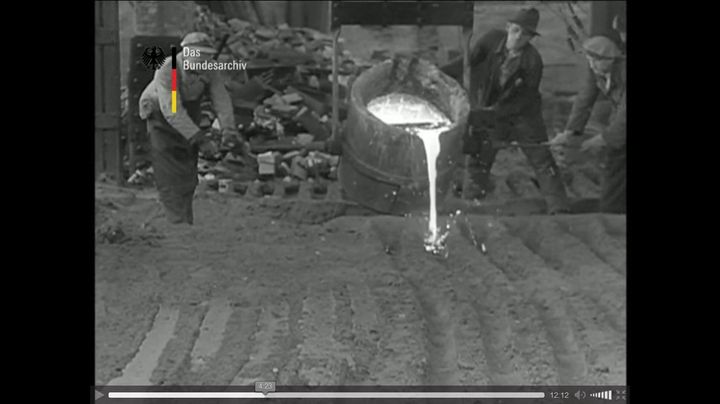 Die Wochenschau "Welt im Film" zeigt am 25.10.1946, wie Arbeiter Eisenschrott in die Luke des Hochofens werfen und wie nach dem Einschmelzen das glühende Roheisen in Formen gegossen wird. Im September 1953 berichtet das Ost-Berliner "Neue Deutschland" über Entlassungen in der Stahlgießerei Bothe, die Aufbereitung von Alteisen war wohl zu einem gewissen Abschluss gekommen.