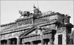 Die feindlichen Brüder Ost- und Westberlin einigten sich erstaunlicherweise 1950 auf eine Wiederherstellung des Tors und der Quadriga. Die Figurengruppe wurde von der Gießerei Noack nach den vorhandenen Gipsabdrücken neu geschaffen. Allerdings bestand die DDR als "Friedensmacht" auf einer neuen Friedensgöttin. Das Eiserne Kreuz und der preußische Adler fehlten bei der Wiederherstellung.