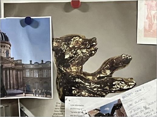 Botschafterin Berlins Bei der Berlinale vergibt die internationale Jury als Preise den Goldene Bär und die Silbernen Bären. Entworfen hat den auf den Hinterpfoten stehenden Bären mit nach vorne ausgestreckten Vorderpfoten die Bildhauerin Renée Sintenis im Jahr 1956 für die Filmfestspiele. In ununterbrochener Folge werden seitdem die Bären von der Bildgießerei Hermann Noack hergestellt. Die Berlinale-Bären sind knapp 19 cm hoch. Eine gut anderthalb Meter hohe größere Version begrüßt die Besucher der Stadt an der Autobahn 115 beim Erreichen der Stadtgrenze. Auch dieser Bär wurde bei Noack gegossen.