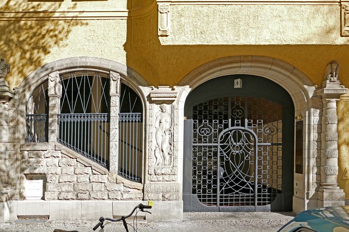 Architekt Albert Gessner Das "Gelbe Haus" des Architekten Albert Gessner in der Mommsenstraße 5-6 und zwei seiner Häuser in der Niebuhrstraße verwirklichen seine Idee, den Wohnungsbau "nach künstlerischen Grundsätzen" auszurichten. Bei gleichartigen Raumformaten im Innern werden die Fassaden verschiedenartig malerisch gestaltet: Variable Fensteröffnungen, rechteckig oder als Bogenfenster, vorgezogene Balkons, eingeschnittene Loggien, Erker, Rücksprünge, unterschiedliche Giebel, schmuckvolle Metallportale, im Innern begrünte Innenhöfe.