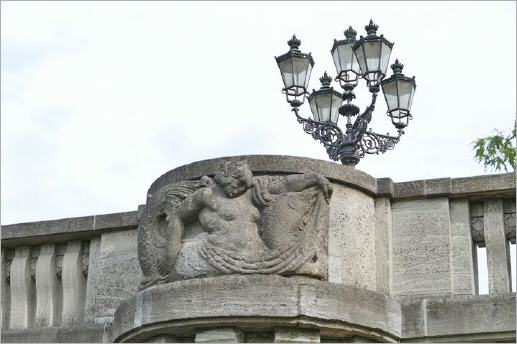 Die Marchbrücke ist eine mit Sandstein verkleidete Spannbetonbrücke. Von der reichhaltigen Ausschmückung ist durch Kriegseinwirkung nur ein Teil erhalten geblieben: Ein mit Ornamenten versehenes Turmhaus und als Bauplastik die Reliefs "mit unterschiedlichen Motiven aus der maritimen Mythologie".