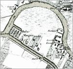 Ein Bebauungsplan von 1857 zeigt, dass das Salzmagazin von dem Kanalabschnitt eingerahmt wurde, an dem Paul Baumgarten später eine Müllverladestation errichtete. Landwehrkanal und Charlottenburger Verbindungskanal wurden gleichzeitig erbaut, am Zusammenfluss mit der Spree entstand so ein idealer Verkehrsknotenpunkt, den sowohl die Kähne mit Salz als auch später die Mülltransporte nutzten.