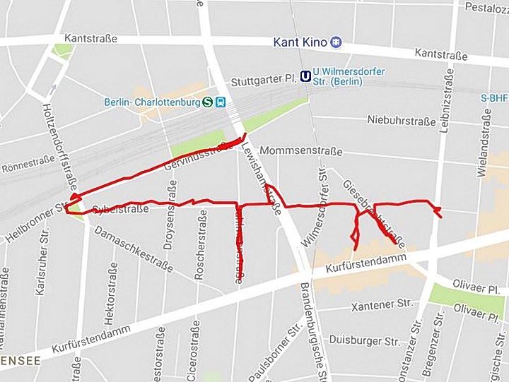 Die Sybelstraße ist heute unser Flanierziel, bis zum Platz an ihrem anderen Ende begleiten wir ihren Verlauf. Der dortige Platz ist dem Zeitgenossen Kracauers, dem Schriftsteller Walter Benjamin gewidmet, der in seiner "Kindheit um 1900" ebenfalls die Stadt Berlin beobachtet und beschreibt.