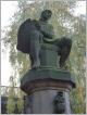 Vor der Brücke über die Spree - dem Wullenwebersteg - benannt nach einem progressiven Bürgermeister Lübecks im 16.Jahrhundert - steht ein Mahnmal zum Gedenken an die Israelitische Synagogen-Gemeinde Adass Jisroel. In der Wittlicher Straße hatte diese streng konservative Gemeinde einen eigenen Friedhof angelegt, im Zusammenhang mit dem Jüdischen Friedhof Weißensee hatte ich hierüber geschrieben (5). Georg Seibert, der das Mahnmal entworfen hat, hat viele massive Stahlskulpturen geschaffen, aber auch ein filigranes kubisches Drahtgeflecht, in dem ein VW-Käfer als Gegenstand der Ehrung schwebt.