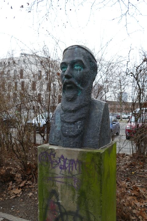 Comeniusplatz, Comeniuspark, Comeniushof Alles mit den eigenen Sinnen aufzunehmen, anstatt auf fremde Zeugnisse und Beobachtungen zurückzugreifen, das war die Botschaft des böhmischen Theologen und Pädagogen Johann Amos Comenius (* 1592). "Die Lust zum Ergründen" wollte er als Pädagoge fördern. Was man sieht, hört, riecht, schmeckt, tastet wird im Gedächtnis bleiben. Er begründete die Didaktik (Unterrichtslehre), schuf das erste bebilderte Kinderbuch, Vorläufer der Schulbücher wurde, trat für die Schulpflicht ein. Kinder, und zwar alle Kinder, sollen von der Wiege an altersgemäß beim Lernen gefördert werden.