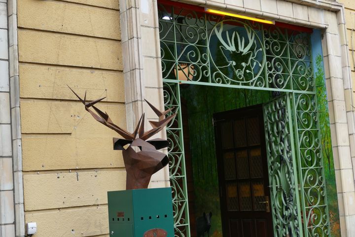Grünberger Straße 1 bis 11 Die benachbarte Wohnanlage hat die DDR 1955 als Gegenpol zu den überkommenen Arbeiterquartieren mit engen Hinterhöfen errichtet. Im Zusammenhang mit den Bauten an der Stalinallee wurde der Stadtgrundriss verändert und die Vorkriegsbebauung ersetzt. An den Bau angrenzend öffnete die "Jägerklause" (vorher "Nante-Eck"), sie wurde zu einem begehrten Lokal, obwohl kaum Wildbret angeboten wurde. Heute wird die Gaststätte vom "Jäger Lustig" bewirtschaftet.