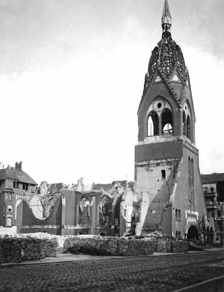 Zweimal wurde die Kirche im Zweiten Weltkrieg von Bomben getroffen, zuletzt brannte sie aus. Damit waren auch die Notgottesdienste im offenen Kirchenschiff nicht mehr möglich. 1949 wurde die Ruine gesprengt und teilte damit das Schicksal vieler Kirchenabrisse in der DDR.