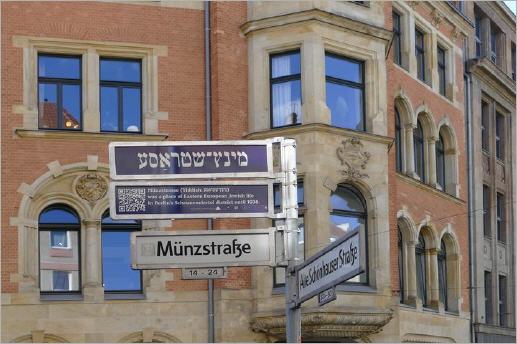 Im Scheunenviertel in der Spandauer Vorstadt ist gerade eine "Erinnerungslandschaft" geschaffen worden, die früheres jüdisches Leben im Viertel wieder sichtbar machen soll: "Spurlos verschwunden? – Jüdische Lebenswelten im Herzen Berlins vor der NS-Diktatur". An zehn Straßen wurden die Richtungsanzeiger ergänzt um Schilder in hebräischer Schrift mit kurzer Erläuterung.