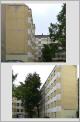 Das Vorderhaus auf dem Grundstück wurde im Krieg zerbombt. Neu ausgelegte Bodenplatten haben den Hof versiegelt. Von seinen Neubauplänen für das Vorderhaus hat der Eigentümer das Bezirksamt nicht überzeugen können, er sei an deren starrer Haltung und überzogenen Auflagen gescheitert. So zeigen heute noch die notdürftig verputzten Flächen der Seitenflügel zur Straße.