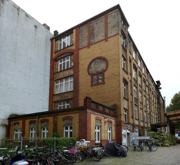 Kistenfabrik Auf dem Grundstück Elsenstraße 52 waren früher eine Etagenfabrik, ein Maschinenhaus und ein Pferdestall nachgewiesen. Alfred Schrobsdorff, der "Baukönig von Charlottenburg", hatte diese Anlagen errichtet. Er war nicht nur Baumeister, sondern auch ein umtriebiger Bauspekulant. Hier in Neukölln war er auf fremdem Terrain tätig, 41 seiner 42 in der Denkmaldatenbank nachgewiesenen Bauten realisierte er in Charlottenburg.