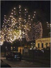Aber nun mal langsam: Vattenfall - früher sagte man jahrzehntelang Bewag zu unserem Strom - beleuchtet jede Adventswoche einen neuen Berliner Brunnen, wobei das Ergebnis eher ein Marketingereignis als eine künstlerische Offenbarung ist, doch seht selbst - der Buddy-Bär weist Euch den Weg. Diesmal ist es der Brunnen vor dem Neuköllner Rathaus, und da wir schon einmal hier sind, gehen wir bis zu dem Böhmischen Dorf am Richardplatz, entdecken in der Richardstraße ein Backsteingebäude, das wahrscheinlich ein Umspannwerk war und für den nächsten Sommer vorgemerkt wird.